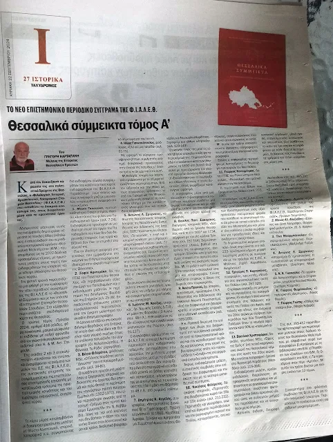 Δημοσίευση για τα "Θεσσαλικά Σύμμεικτα"